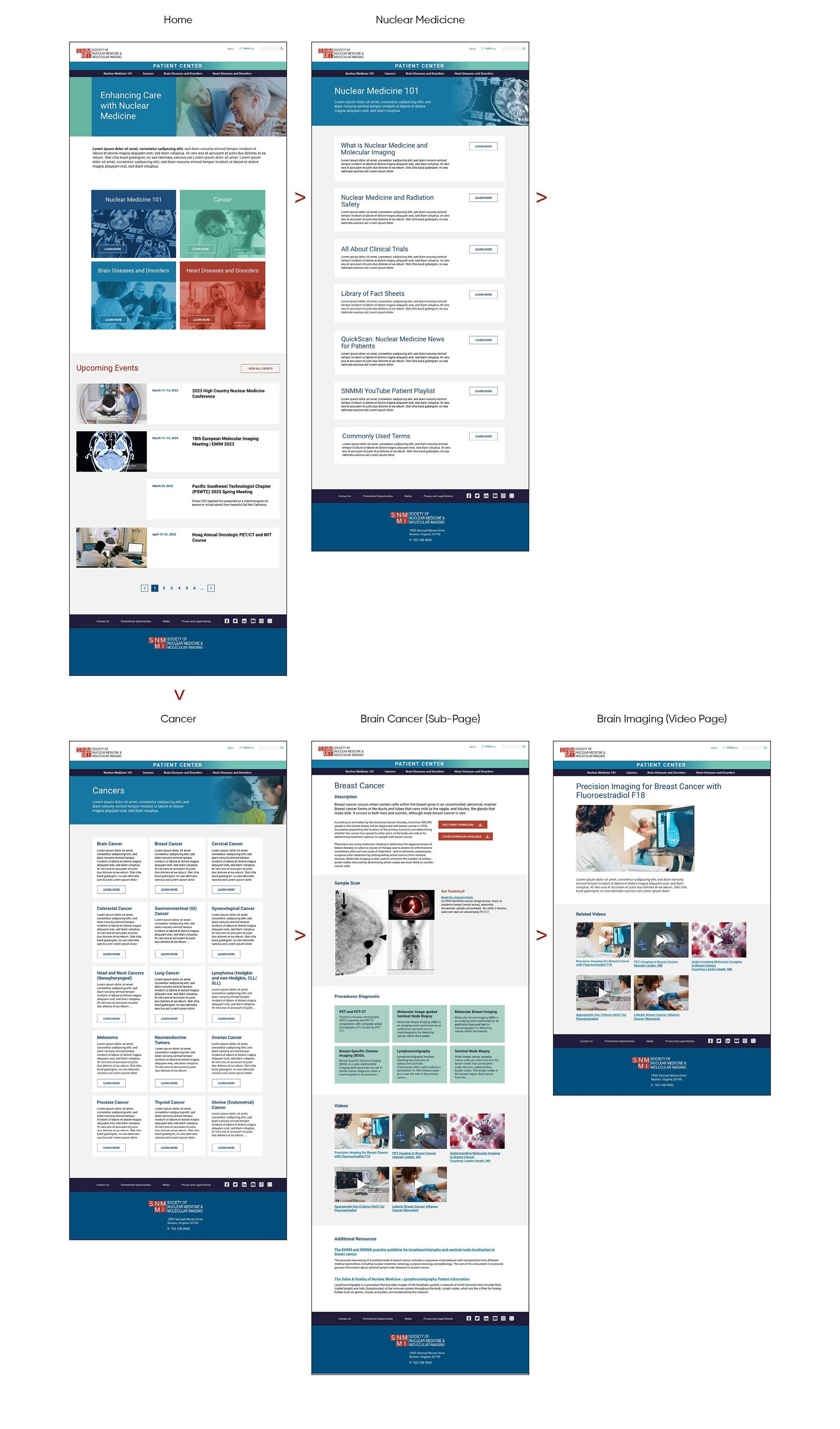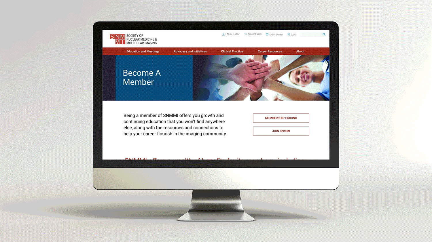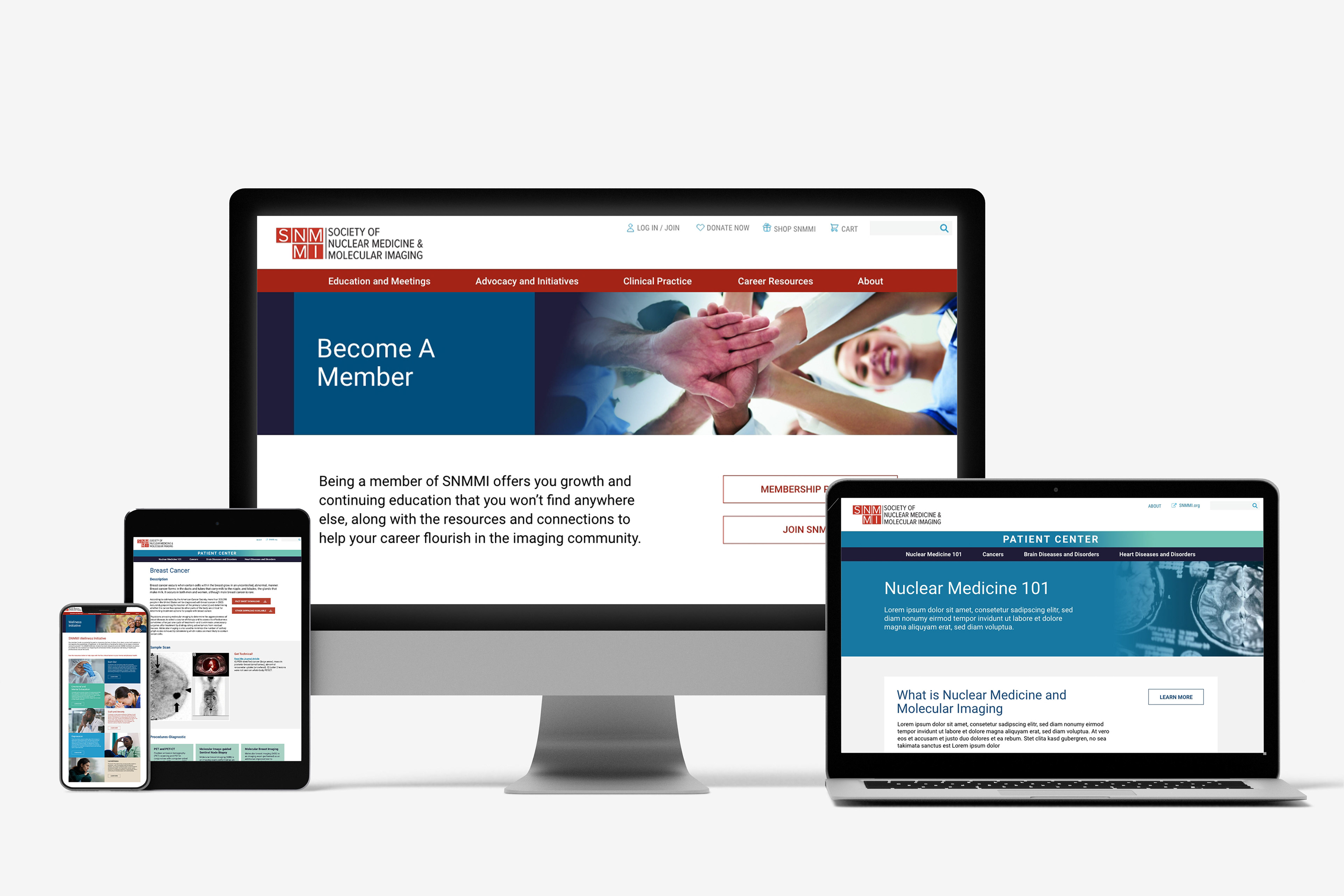 SNMMI (Society of Nuclear Medicine and Molecular Imaging) is a nonprofit organization that promotes the science, technology, and practical application of nuclear medicine and molecular imaging. In this project, we were in phase 2 of the organization's redesign of its website. This portion focuses on the patient-facing side. In this redesign, we wanted to bring in more of the color palette from the initial branding, but also focus on making navigating the various topics included in nuclear medicine. Understanding the patient experience was a huge factor in the design of the following pages. We wanted to make sure that the membership page was easy to find and a pivotal call to action, while also highlighting some of the main and more popular destinations for users. This redesign was a major upgrade from the initial site, and not only brought in more of the branding of the organization, but also made navigating a large amount of information provided much easier for everyday users.